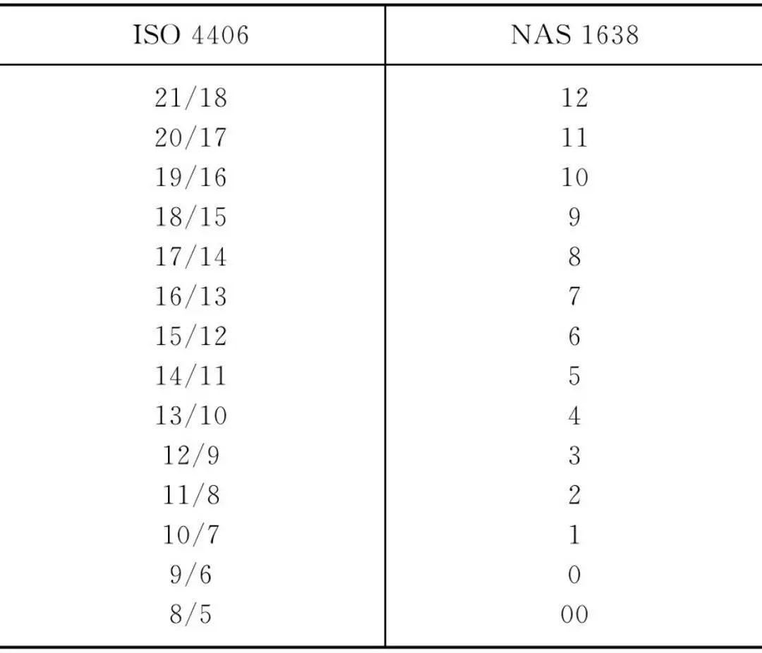 表3 ISO 4406與NAS 1638污染度等級(jí)對(duì)照表