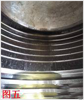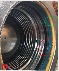 故障現(xiàn)象:以上為500H未更換油封,導(dǎo)致活塞缸體等部件出現(xiàn)早期拉傷故障現(xiàn)象。(因為油封未及時更換,加上液壓油清潔度不達標(biāo)造成,見圖三、圖四、圖五)如繼續(xù)使用,就會造成“拉缸”的重大故障。