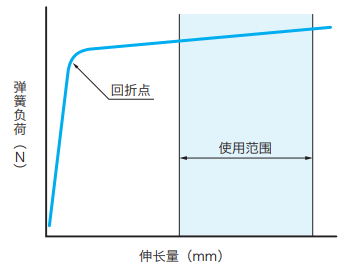 彈簧的作用是提高密封唇在軸上的壓緊力,是保持此壓緊力所需的部件。油封所使用的彈簧具有所示特性。因此,微小的伸長就可以得到必要的負(fù)荷。由可知,在一定伸長限度下,彈簧負(fù)荷就沒有太大變化。另外,為了使彈簧在的使用范圍內(nèi)發(fā)揮功能,設(shè)定長度時(shí)考慮了適當(dāng)?shù)纳扉L率。