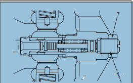 如果回轉(zhuǎn)溢流壓力不正常,按下列順序調(diào)整回轉(zhuǎn)馬達(dá)安全閥(6)