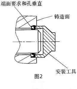 應(yīng)設(shè)計(jì)專用的工位器具和專用工裝,確保油封密封處軸頸表面不被劃傷、油封唇口不損壞以及油封唇口安裝方向正確;在安裝過程中如油封唇口需通過螺紋、鍵槽、花鍵等時(shí),應(yīng)采取相應(yīng)措施(如采用厚紙、膠布等蓋住螺紋表面)防止唇口損傷;如果唇邊鎖簧較松,可剪去10~15mm,將鎖簧首尾牢固相連,裝配時(shí)一定要用專用的壓套,輕輕壓進(jìn)油封孔座,切不可敲打,更不準(zhǔn)用錘子直接敲打油封;在不同的情況下,其安裝要求不同。在直孔且端面經(jīng)過加工的情況下,安裝工具須將油封壓至加工面(見圖1);在安裝孔帶臺階的情況下,安裝工具須將油封壓至臺階的端面(見圖2);在直孔且端面不加工的情況下,安裝工具必須將油封壓至軸的端面(見圖3)。