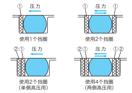 當(dāng)工作壓力小于9.8MPa時一般不設(shè)計擋圈,當(dāng)壓力大于9.8MPa時O型橡膠密封圈承壓面易被擠出。