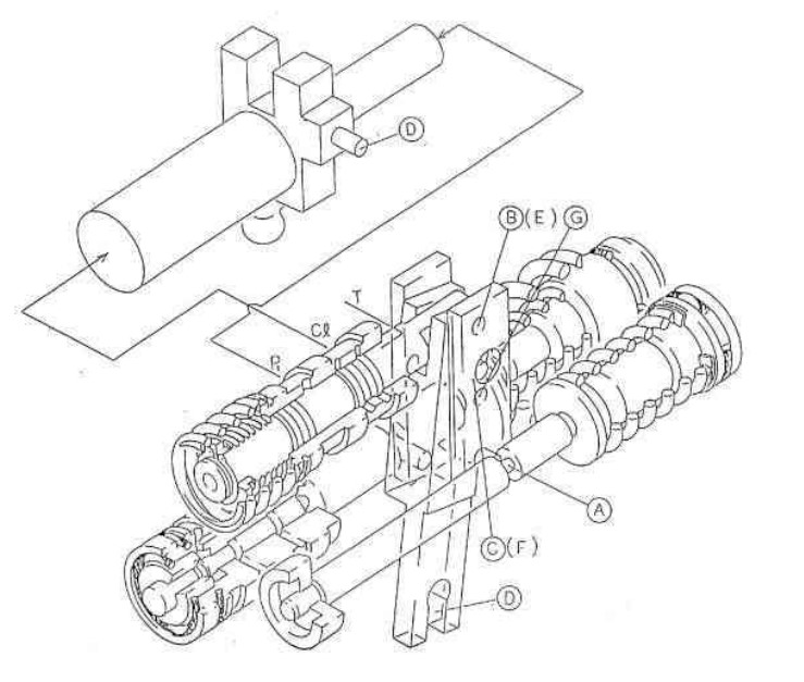 主要是通過(guò)六角螺母630來(lái)調(diào)節(jié)螺釘C(628)來(lái)擰緊螺釘,控制圖向右邊移動(dòng)。四分之一圈,調(diào)節(jié)的壓力是增加或縮小16kgf/cm㎡,輸入的扭矩也相對(duì)應(yīng)的5kgf.m。K3V112作為工程機(jī)械用的活塞泵,應(yīng)用范圍廣,主要更被人稱(chēng)道的是它的質(zhì)量。