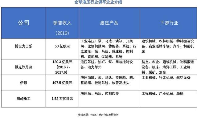 德、美、日制造業(yè)底蘊(yùn)深厚,擁有全球液壓巨頭企業(yè),德國、美國、日本的液壓產(chǎn)業(yè)在全球保持領(lǐng)先,擁有液壓行業(yè)最優(yōu)質(zhì)企業(yè)??傮w而言,液壓產(chǎn)業(yè)的發(fā)展離不開龐大的本土市場(chǎng)需求和企業(yè)強(qiáng)大的技術(shù)研發(fā)實(shí)力與工藝積淀,德、美、日作為傳統(tǒng)的制造業(yè)強(qiáng)國,強(qiáng)大的制造業(yè)底蘊(yùn)成就了一批液壓行業(yè)的百年老店,全球液壓元件行業(yè)公認(rèn)的百年老店包括:博世力士樂(Rexroth)、派克漢尼汾(Parker Hannifin)、伊頓(Eaton)、川崎重工等。