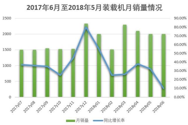 圖注:2017年6月至2018年5月裝載機月銷量情況