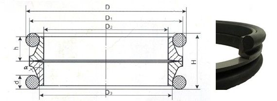 是針對高負(fù)載設(shè)備設(shè)計的,常用于各種重型采刁’一設(shè)備易發(fā)生較大振竄、沖擊的部位,如采煤設(shè)備搖臂、鏈輪、減速機(jī)等。它由一對截面為L形的浮封環(huán)和一對膠圈(橡膠碟形彈簧)組成,裝配在L形浮封座內(nèi),原理與A型相似。由于膠圈的變形能力大于O型圈,因此可以提供更大的浮動范圍。另外L形浮封座也易于加工,B型浮動油封的裝配也較為方便。