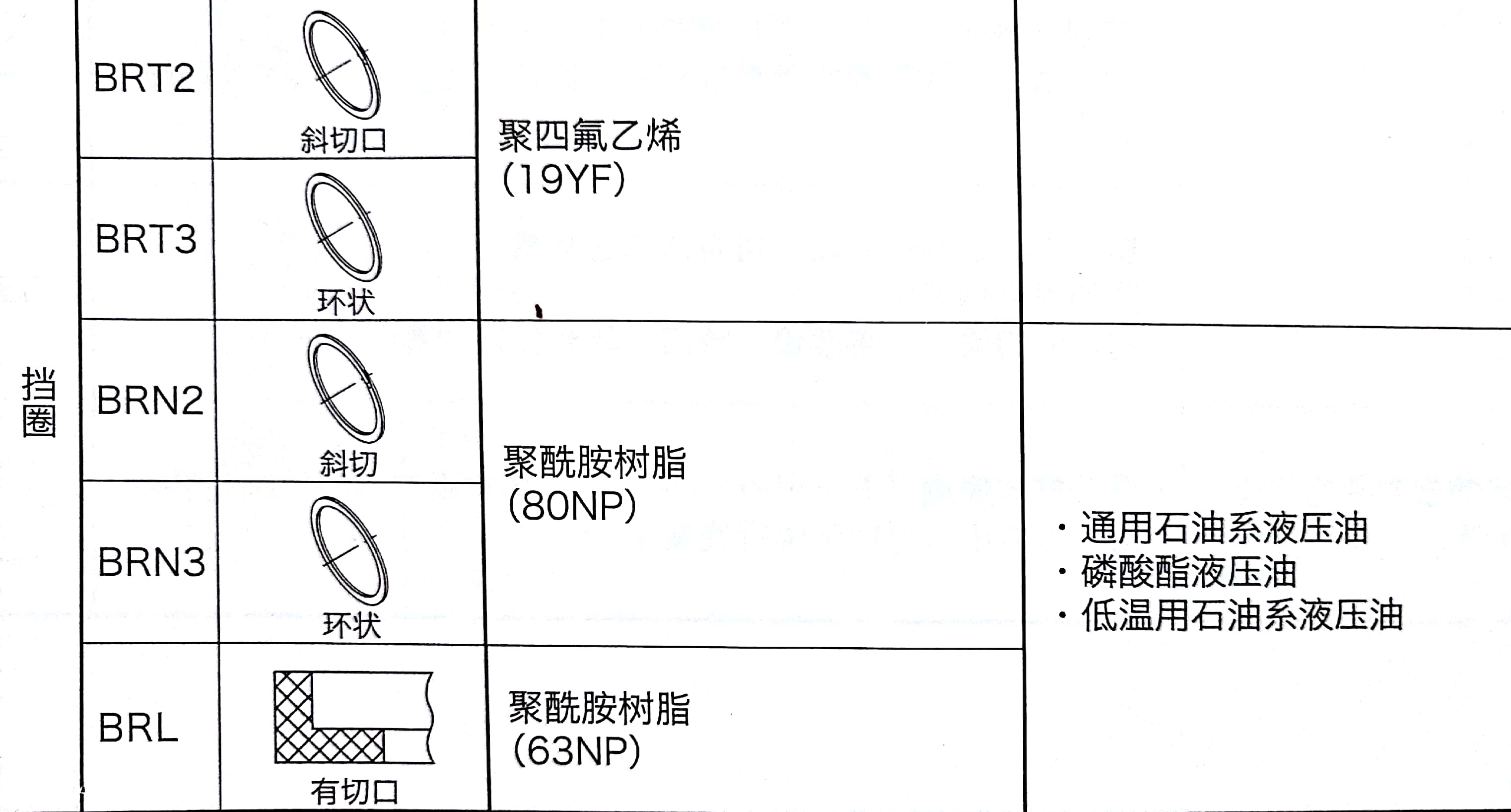 考慮到以上幾點,NOK準備了工程塑料的聚四氟乙烯樹脂和聚酰胺樹脂兩種材料。目前常用的擋圈型號是:BRT2、BTR3、BRN2、BRN3、BRL幾種,能夠有效防止密封件的擠壓,提高密封件的耐壓度。