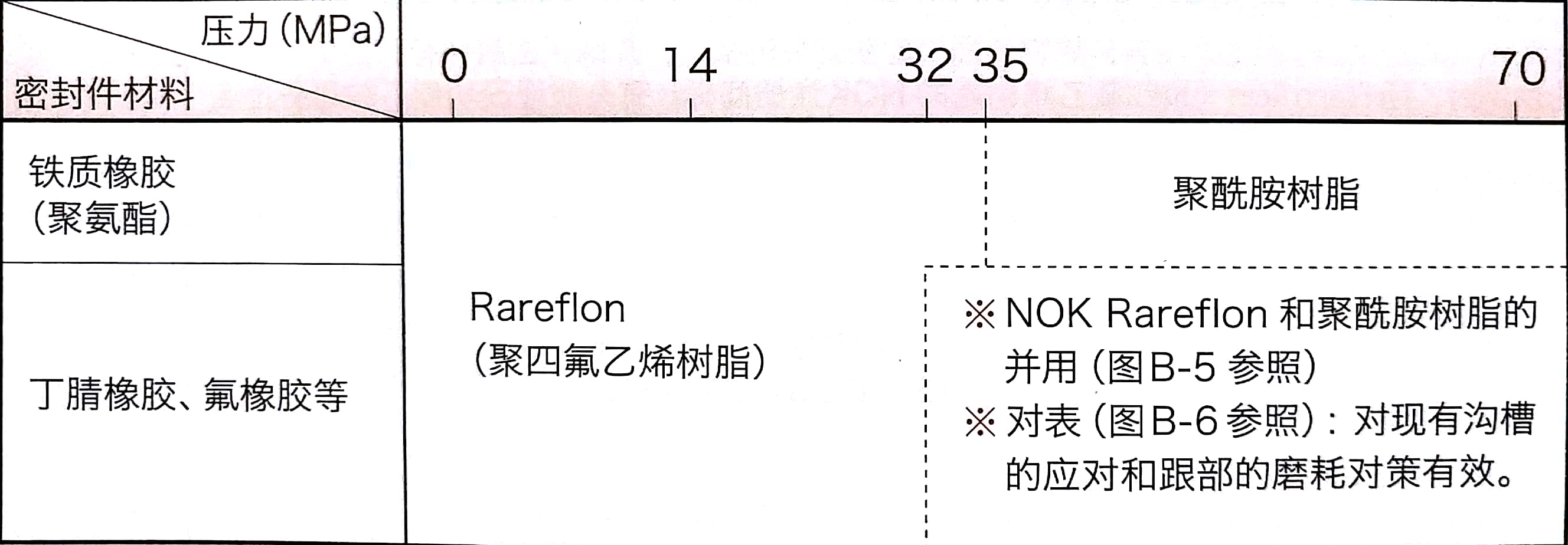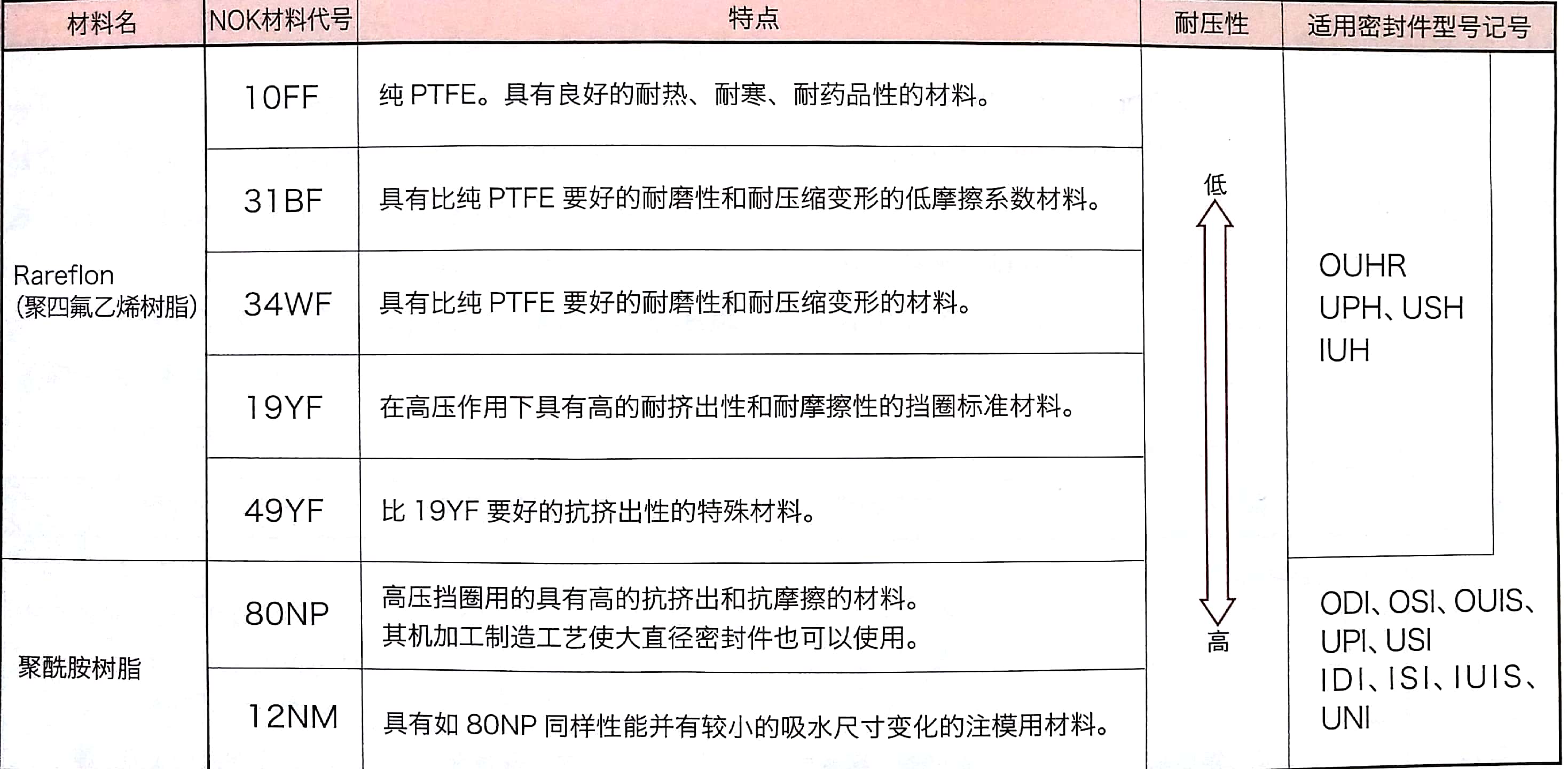 日常使用一般采用聚四氟乙烯材料制作的擋圈,而在高壓時候可以使用針對變形的高剛性聚酰胺樹脂。(附上兩種材料使用的壓力范圍,可以根據(jù)需求選購,電話:0594-2632638)