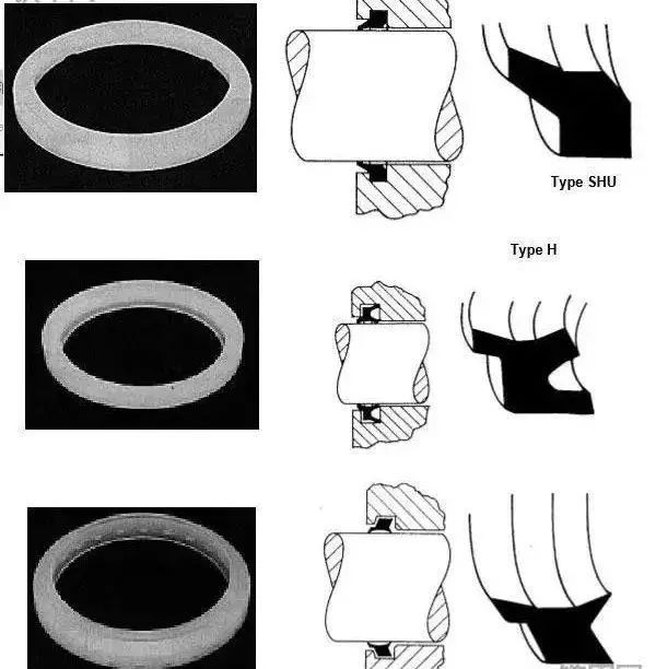 緩沖密封圈作為輔助的活塞桿密封圈,用于在系統(tǒng)壓力突然增加時(shí)保護(hù)活塞桿。常見的有三種類型的緩沖密封圈。A型是由聚氨酯制成的單件密封圈。B型和C型為兩件式,用于防止密封擠壓,允許密封件承受更高的壓力。