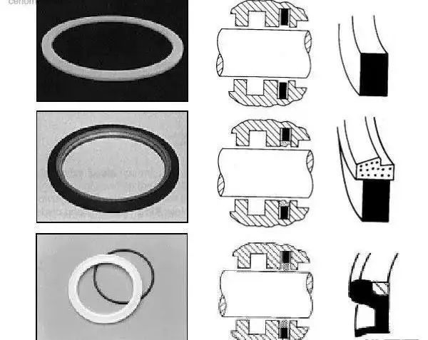 活塞密封圈用于隔絕液壓缸的兩個(gè)腔室,是液壓缸內(nèi)的主密封件。通常為兩件式,外圈由聚四氟乙烯或尼龍制成,內(nèi)圈由丁腈橡膠制成。也有多種變體,包括采用涂有聚四氟乙烯的青銅,等等。在單作用油缸上,也有采用聚氨酯U形杯的。