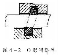 2) 回轉(zhuǎn)密封時O形圈可斜置。O形圈用于回轉(zhuǎn)密封時, 線速度不能太大, 一般以O.3~0.5m/s為宜, 否則會漏油。因為o形圈用于旋轉(zhuǎn)密封時, 在接觸處產(chǎn)生摩擦熱, 溫度 不斷上升, 在接觸處出現(xiàn)斷油現(xiàn)象造成磨損和老化。且處于拉伸狀態(tài)的橡膠遇熱產(chǎn)生收 縮現(xiàn)象 (焦耳效應) 。即產(chǎn)生 “摩擦熱 , 收縮 , 箍緊力增大 , 產(chǎn)生摩擦力 , ??” 反復循 環(huán), 大大加劇了橡膠老化龜裂和磨損, 導致密封失效, 產(chǎn)生泄漏量與轉(zhuǎn)速有關(guān), 為此, 一般 將O 形圈內(nèi)徑設計成與轉(zhuǎn)軸直徑相等或稍大一些 (3~5%) 。在安裝時使 ( 形圈從外 向里壓縮, 并將斷面的壓縮量也設計得小一些 (約5%) 。此外, 盡量使用耐熱的材料, 并 考慮 O形圈的散熱和潤滑。另外可斜置安裝O形圈 (圖4-2) 。采用這些措施后, 可達 到pu值 (密封壓力 6 線速度) 為5.6MPa*7.65m/s=42.84MPa.m/s的值。