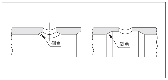 唇部直接通過油壓孔,請(qǐng)用一根圓棒(樹脂)輕輕推唇部。這樣可以防止孔的倒角部分損傷密封件的唇部。在缸筒上直接鉆油壓孔時(shí),請(qǐng)如下圖所示,做出倒角。