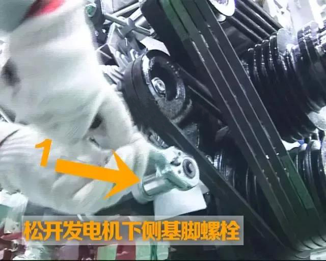 第二步:旋松調(diào)整螺栓,將發(fā)電機(jī)皮帶調(diào)整為規(guī)定的松緊度后,擰緊安裝螺母和調(diào)整螺母。